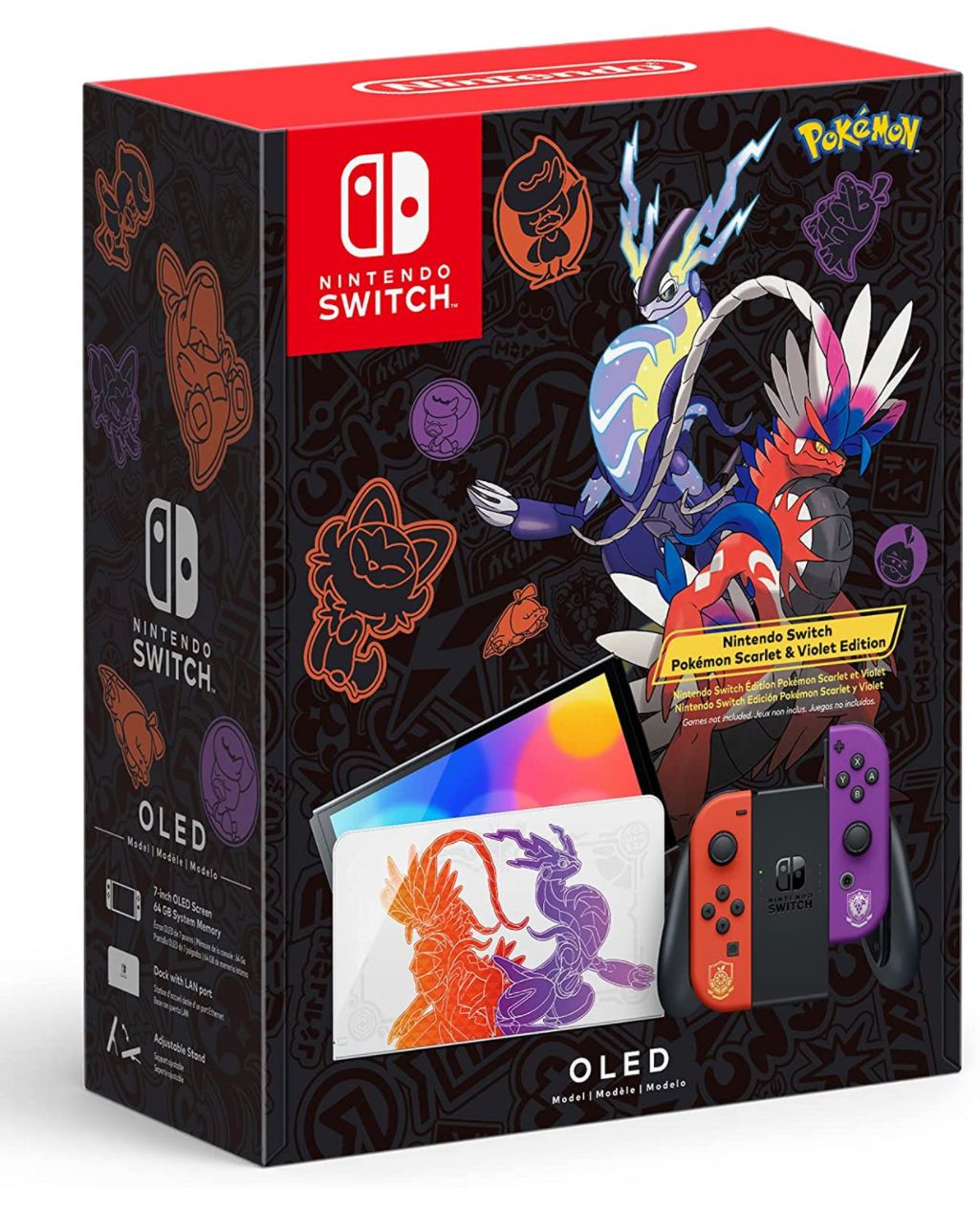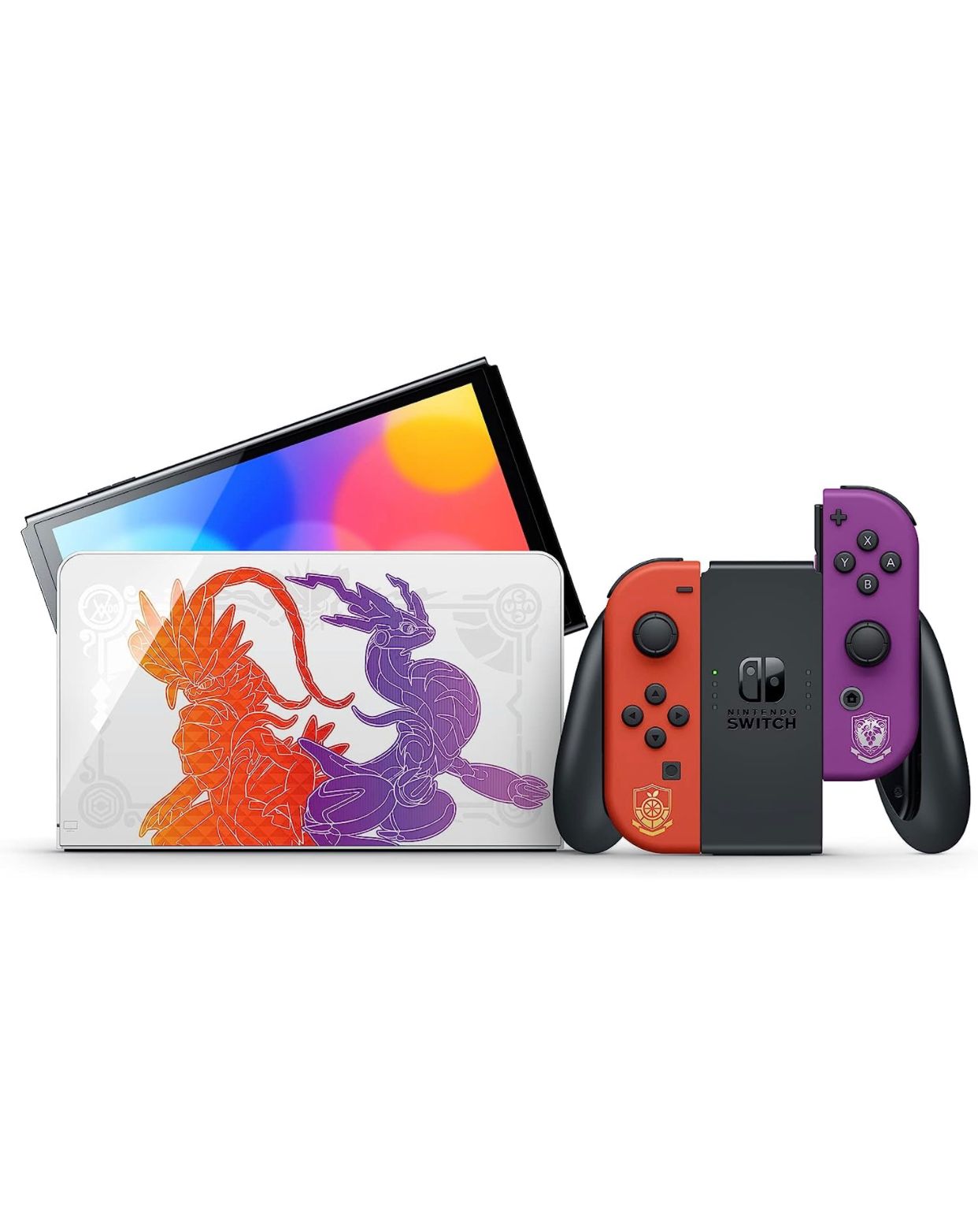 01 - Console Nintendo Switch OLED personalizado com o tema de Pokémon Scarlet & Violet;
