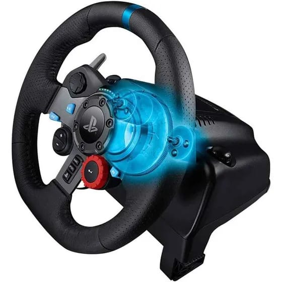 Desenhado de forma impecável para uma experiência perfeita ao volante, o G29 eleva os jogos de corridas mais recentes ao nível mais alto. Apresenta Force Feedback com motor duplo e embreagem helicoidal, permitindo uma direção suave e silenciosa. O câmbio de aço inoxidável e os LEDs indicadores de RPM/marcha ajudam a fazer trocas de marcha precisas e fluidas sem tirar os olhos da pista.