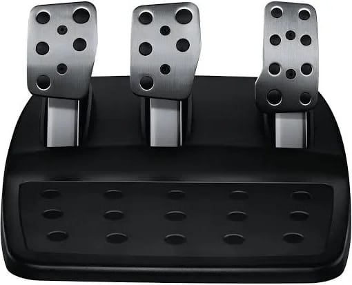 O pedal separado fornece controle reativo natural com um pedal de freio não linear. O G29 foi projetado para proporcionar conforto e durabilidade, com acabamento em couro costurado à mão e componentes de aço inoxidável. Pontos embutidos de parafusos e presilhas permitem que o volante seja montado com firmeza em uma mesa ou cockpit de corrida, minimizando os movimentos ou vibrações em manobras agressivas.