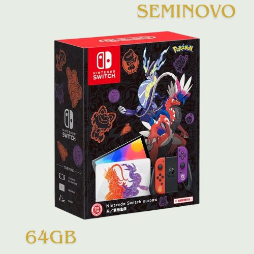 01 - Console Nintendo Switch OLED personalizado com o tema de Pokémon Scarlet & Violet;