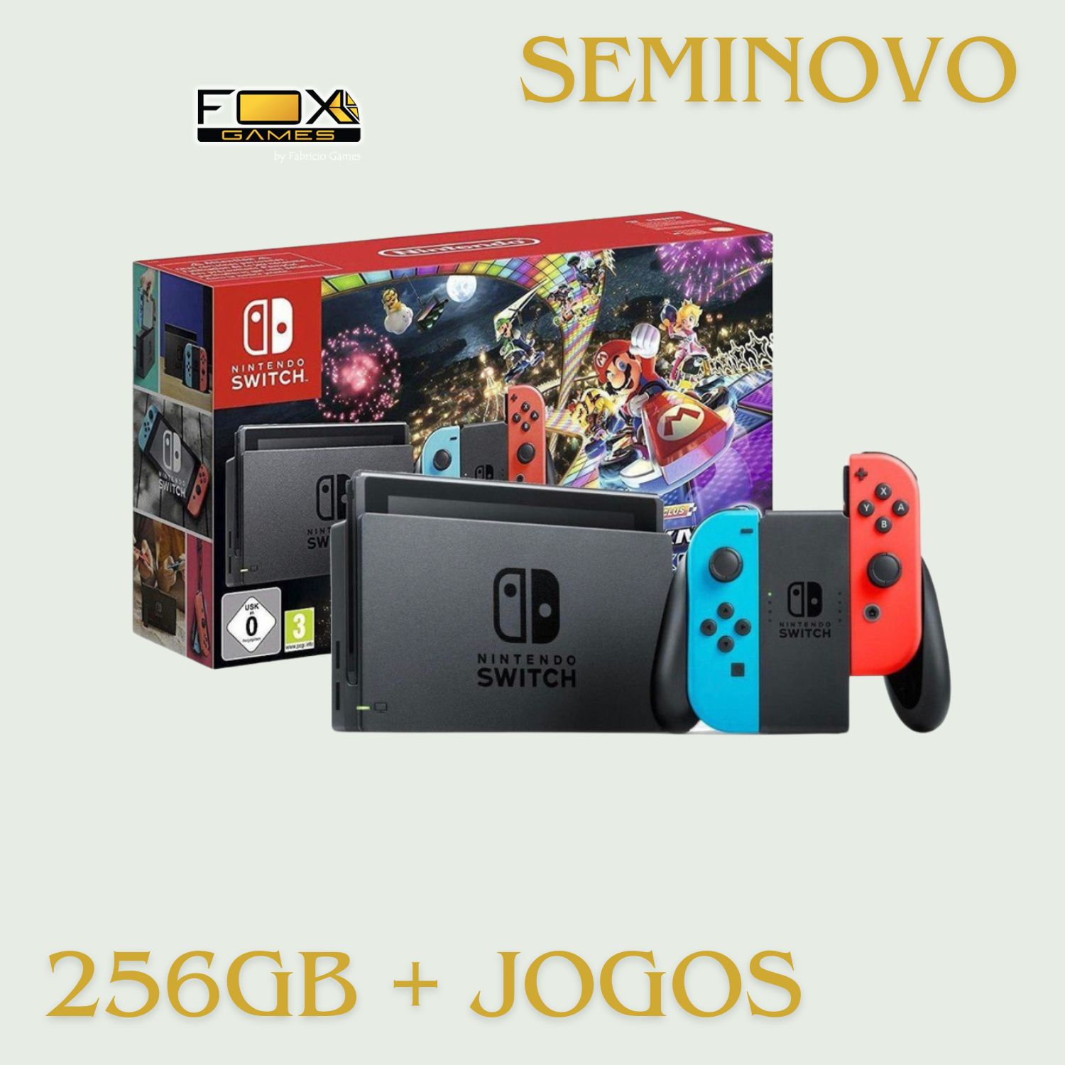 Acompanha cartão micro SD de 256GB e Alguns jogos na memória